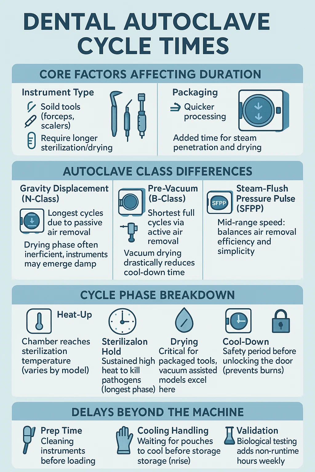 Hier ist eine Aufschlüsselung von Dentalautoklav Zykluszeiten unter Berücksichtigung praktischer Faktoren: