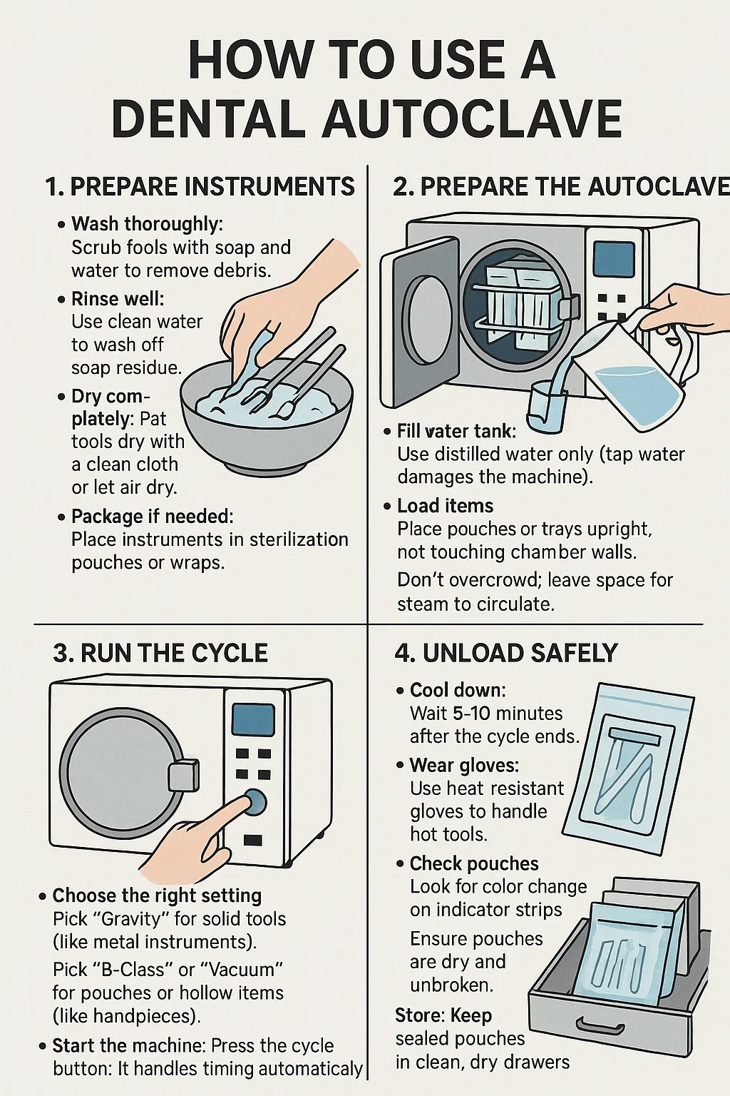 Hier ist eine einfache Anleitung zur Verwendung von a Dentalautoklav :