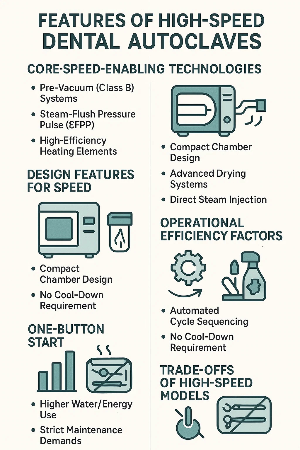 Hier finden Sie eine Übersicht über die Funktionen, die am schnellsten sind Dentalautoklaven , ohne Angabe von Marken, Modellen oder technischen Spezifikationen: